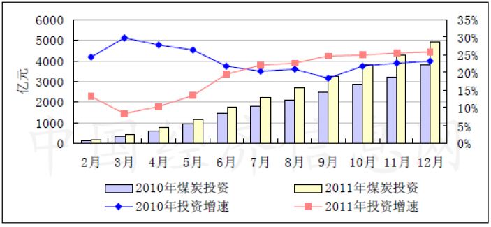 2011年全國煤炭行業(yè)固定資產(chǎn)投資及同比增速