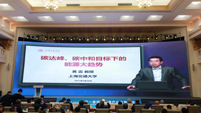 中國工程院院士,上海交通大學(xué)教授、博士生導(dǎo)師、副校長,中國民主促進會中央副主席黃震以視頻方式發(fā)表演講,題目是《碳達峰碳中和目標下的能源大趨勢》。