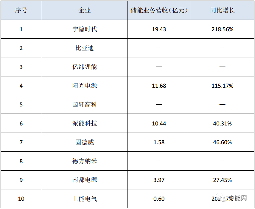 2020年儲(chǔ)能概念股儲(chǔ)能業(yè)務(wù)營(yíng)收
