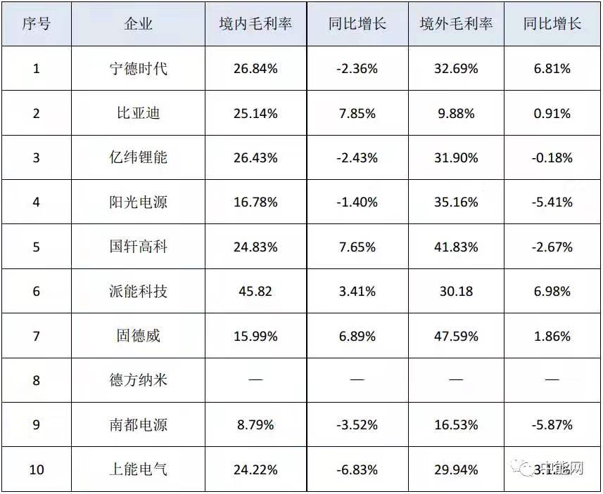 數(shù)據(jù)顯示,寧德時(shí)代2020年毛利率有一定程度的下降,具體來(lái)看,國(guó)內(nèi)方面寧德時(shí)代國(guó)內(nèi)營(yíng)收與2019年同期相比下降了3.14%,營(yíng)業(yè)成本上升0.09%,導(dǎo)致其境內(nèi)毛利率下降2.36個(gè)百分點(diǎn)。國(guó)際市場(chǎng)方面,寧德時(shí)代的營(yíng)收能力和營(yíng)業(yè)成本均大幅增長(zhǎng),分別為295.3%和259%,由于營(yíng)收能力強(qiáng)于成本增長(zhǎng),導(dǎo)致其海外毛利率有所增長(zhǎng)。