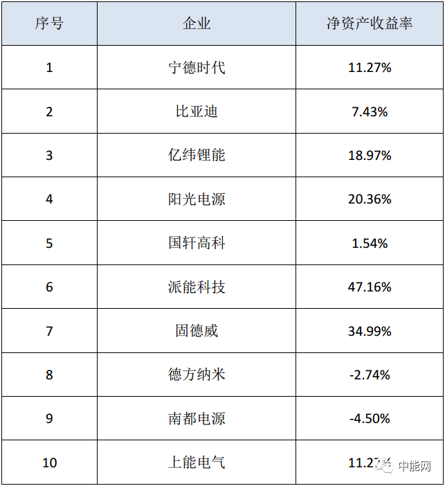 2020年儲(chǔ)能概念股凈資產(chǎn)收益率