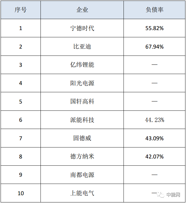 從資產(chǎn)負(fù)債率來(lái)看,寧德時(shí)代、比亞迪、派能科技、固德威、德方納米披露了負(fù)債率,數(shù)據(jù)顯示,寧德時(shí)代、派能科技、固德威、德方納米四家企業(yè)負(fù)債率都處于40-60%范圍之內(nèi),屬于健康狀態(tài)。比亞迪負(fù)債率為67.94%屬于偏高狀態(tài)。