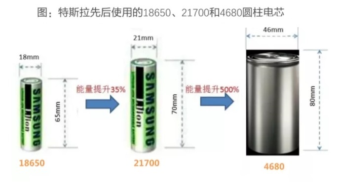 相比此前特斯拉使用的18650和21700尺寸圓柱鋰電池,4680電池的優(yōu)勢(shì)主要體現(xiàn)在電池容量、生產(chǎn)成本和效率。