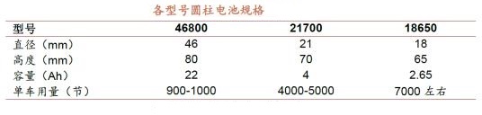 2、單體容量大:大體積設(shè)計(jì)使電池容量提升至傳統(tǒng)電池容量的5倍(預(yù)計(jì)30Ah),電池容量的提升也會(huì)導(dǎo)致續(xù)航里程有所提升(提高16%);