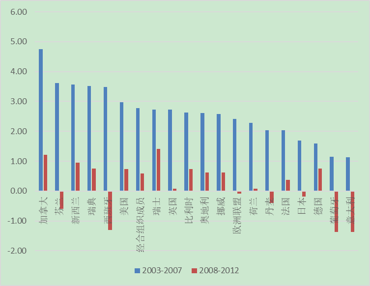 圖3 部分國家2007年碳達峰或前后5年經濟增速的變化幅度(單位:%)
