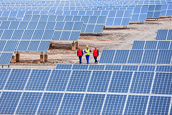 國網(wǎng)哈密供電公司黨員服務(wù)隊前往哈密石城子光伏產(chǎn)業(yè)園開展用電服務(wù),助力新能源產(chǎn)業(yè)發(fā)展。(馮洋 攝)