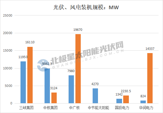 風電方面,三峽、華潤、中核、中廣核和國投電力總裝機超55.47GW,約占全國風電裝機17%,中廣核、三峽集團和華潤電力裝機突破15GW。