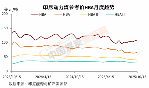10月15日,印尼能源與礦產資源部(Energy and Mineral Resources Ministry)發布2025年10月下半月印尼動力煤參考價(HBA),各品種煤價格較10月上半月價格繼續全面上調。