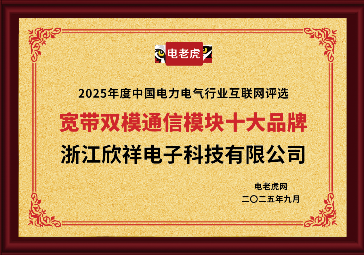 近日,在行業內備受矚目的評選中,浙江欣祥電子科技有限公司憑借卓越的技術實力與出色的產品表現,榮獲“寬帶雙模通信模塊十大品牌第三名”,再次彰顯了其在電力物聯網領域的領先地位。