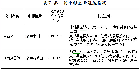 (二) 第一輪中標企業(yè)進展情況(中石化川南區(qū)塊、 河南煤層氣秀山區(qū)塊);