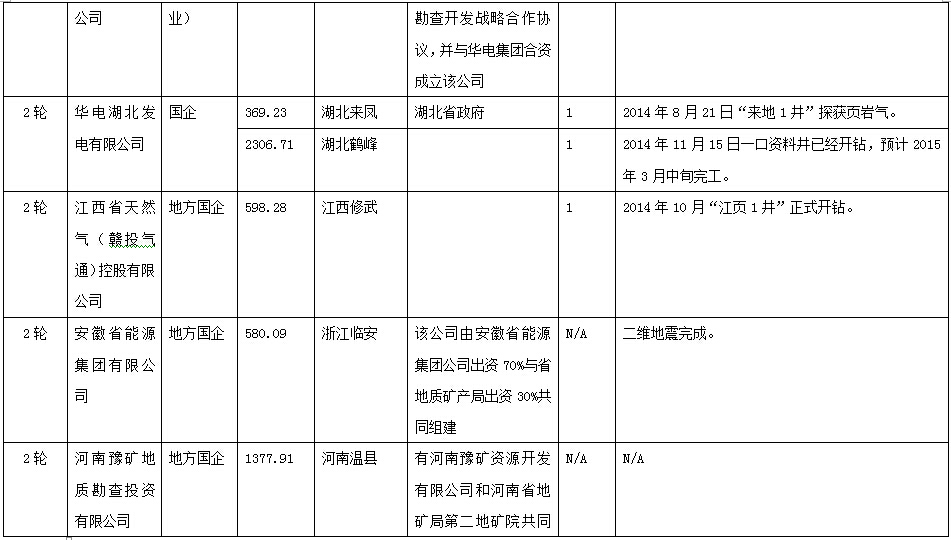 (三)第二輪中標企業(yè)進展情況(16家企業(yè),19個區(qū)塊);