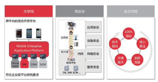 全面保護(hù)、安全支撐的SmartGO.EMM,為企業(yè)級(jí)客戶提供從終端、應(yīng)用、傳輸?shù)椒?wù)的端到端安全保護(hù),在加密算法、認(rèn)證體系、運(yùn)行環(huán)境等關(guān)鍵技術(shù)上采用了完全國(guó)產(chǎn)化的技術(shù)應(yīng)用,并通過(guò)權(quán)威機(jī)構(gòu)的信息安全測(cè)評(píng)與認(rèn)證,為政企用戶提供完全自主、可靠、安全的移動(dòng)運(yùn)行保障。
