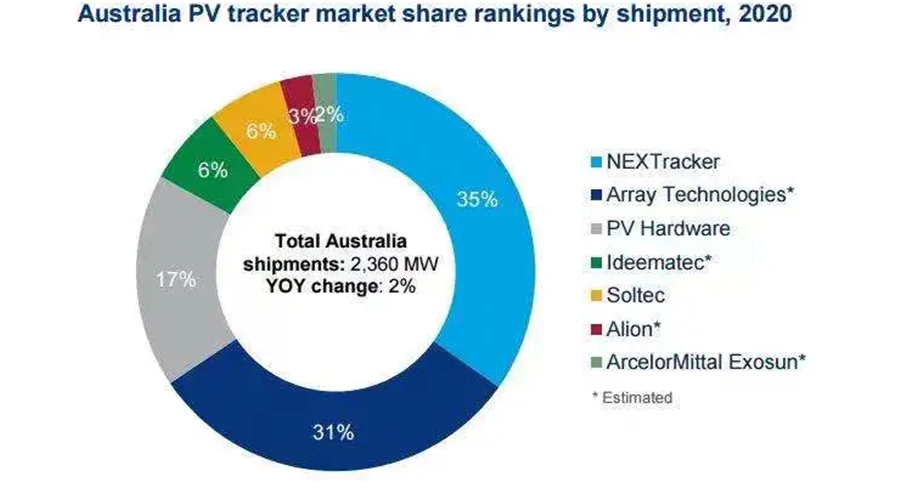 圖片:2020年澳大利亞市場光伏跟蹤支架出貨排名 來源:伍德麥肯茲