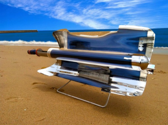 “GoSun”表面有一塊金屬,包在長(zhǎng)2英尺、直徑2.25英寸的圓筒形器皿,它能保存太陽能,吸收80%陽光,溫度最高可達(dá)攝氏290度,與普通煮食爐無異。設(shè)計(jì)最棒的地方,是即使沒有陽光,仍能利用保存的熱力繼續(xù)烹調(diào),不受環(huán)境限制,一般冷藏食品甚至生肉也能煮熟。