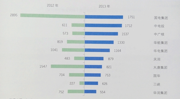 2012年 - 2013年中國新增裝機排名前十的開發商對比圖